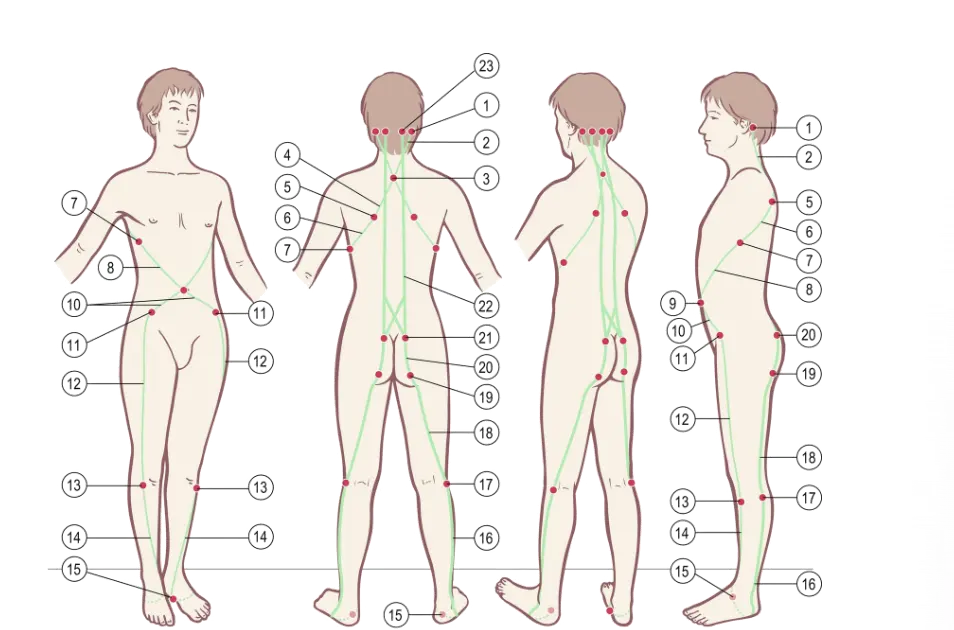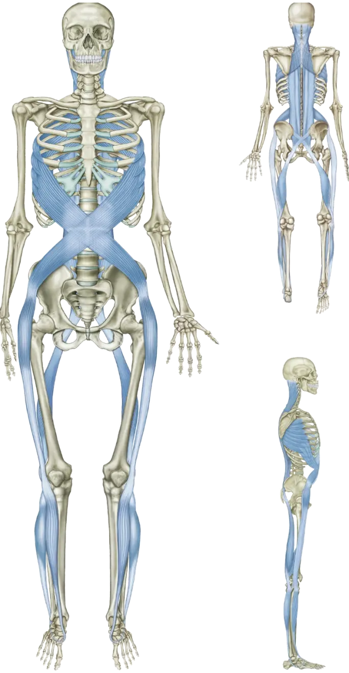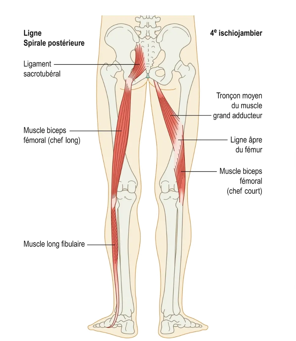 Parce que la ligne en spirale passe sous le pied comme une écharpe, elle gère la stabilité entre la pronation et la supination. S’ensuit la gestion des mouvements transversaux et/ou de rotation du tronc.