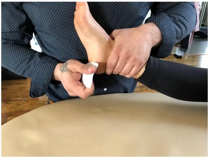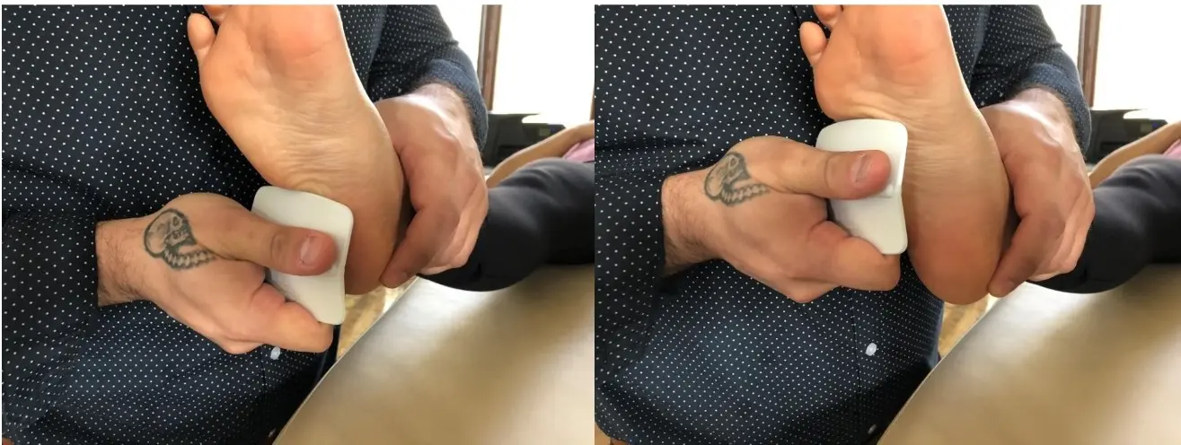 Déterminez les zones du pied du patient manquant d'appuis. Demandez-lui de se tenir debout dans une position confortable sans faire d'effort particulier de posture et de vous dire s'il ressent les mêmes pressions entre les deux talons, bords externes des pieds et sous les deux premières têtes méta.